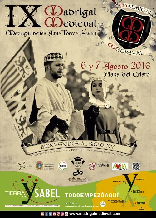 Madrigal Medieval llega en 2016 a su novena edición celebrándose los días 6 y 7 de agosto en la villa de Madrigal de las Altas Torres (Ávila), y centrado en las importantes figuras del rey Juan II de Castilla e Isabel La Católica.